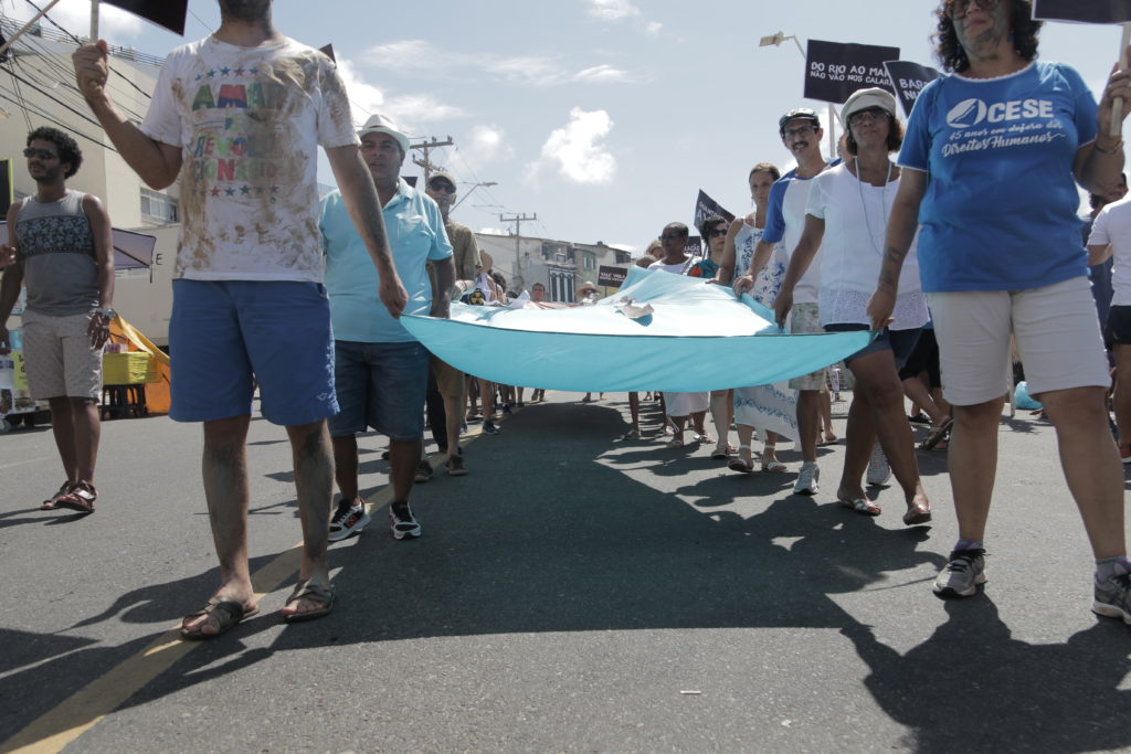 O ato aconteceu no dia 2 de fevereiro, pelas ruas do bairro do Rio Vermelho, em Salvador, em meio a tradicional Festa de Iemanjá, com centenas de vítimas e um enorme passivo ambiental.