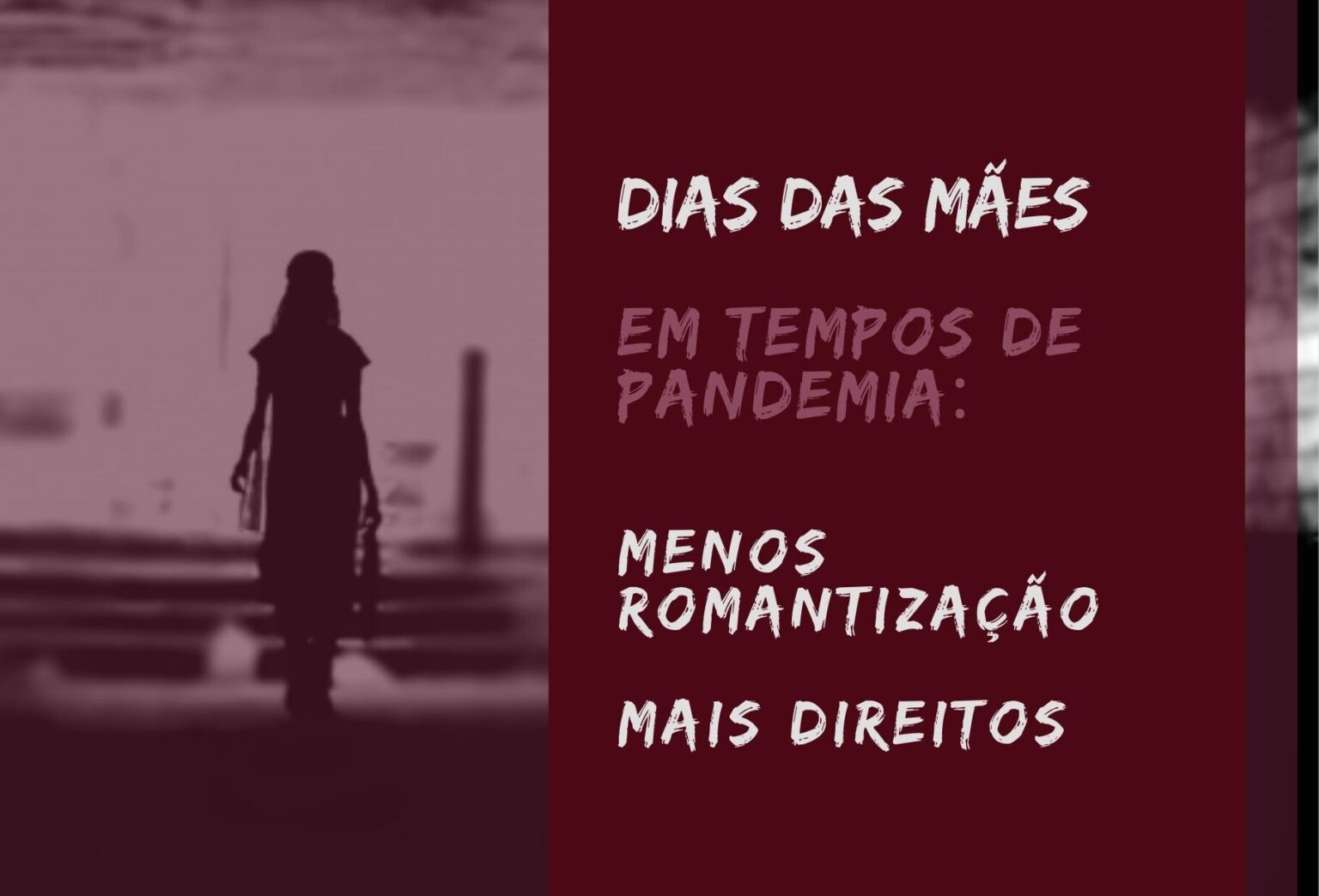 Se em tempos de normalidade, a vivência da maternidade é marcada pela falta de apoio dos homens, da sociedade e do Estado, em um país construído com base em profundas injustiças de gênero, raciais e de classe, nesse momento de pandemia de Covid-19, essa situação ganha contornos dramáticos. As necessárias medidas de isolamento e distanciamento social são inalcançáveis para as mães trabalhadoras informais, que precisam batalhar a cada dia o sustento de suas famílias. As mães trabalhadoras da saúde se expõem à contaminação, muitas vezes sem equipamentos de proteção adequados. Enquanto isso, os índices de violência doméstica contra mulheres aumentam assustadoramente no contexto de isolamento social. Com a convivência intensificada e os procedimentos de higiene e limpeza para evitar a contaminação pelo coronavírus, o trabalho doméstico fica mais exigente, assim como a atenção à saúde e os cuidados com crianças e idosos, tarefas que ficam quase sempre sob a responsabilidade das mulheres, muitas delas mães. A violência policial se intensifica, ceifando vidas negras nas comunidades periféricas e a violência no campo se agrava, fazendo tombar sem terra, quilombolas e indígenas. As noites insones das mães de filhos/as encarcerados/as agora são invadidas por novas imagens aterrorizantes em que eles/as podem estar doentes e serem confinados/as em contêineres.