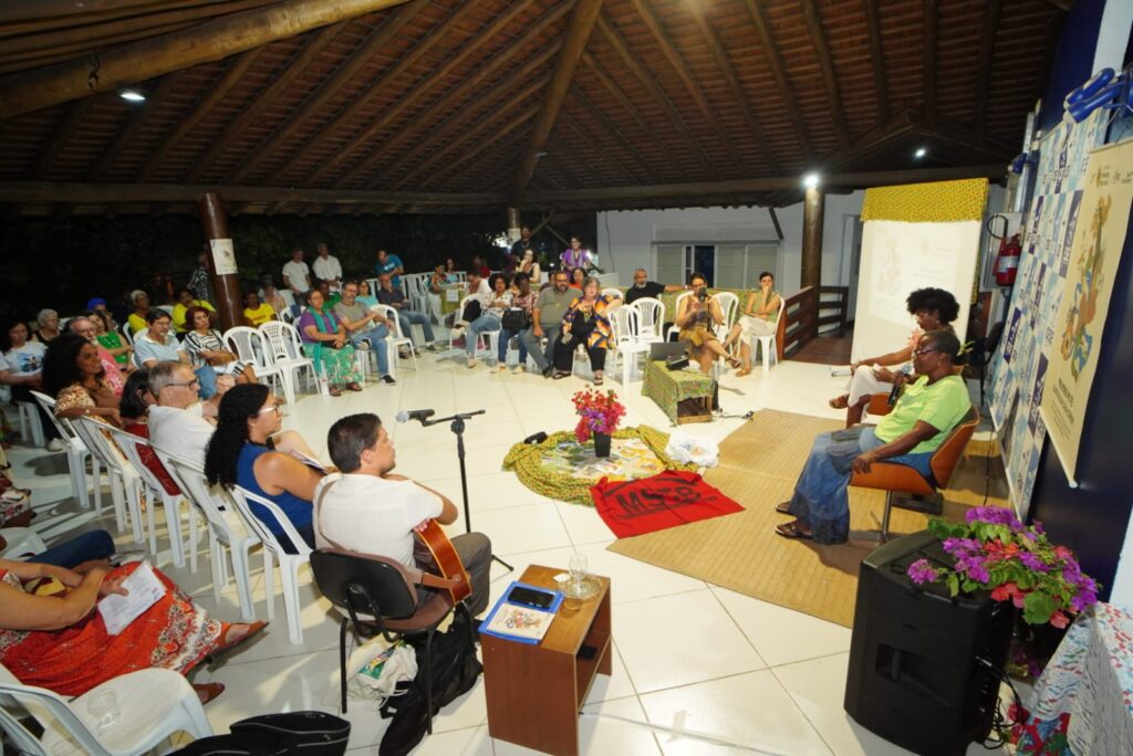 Para compartilhar experiências e reflexões de quem está diretamente na luta em seus territórios, o evento também contou com a participação de duas valorosas companheiras:  Bárbara Ramos,  quilombola, escritora, pedagoga e integrante da coordenação da Articulação Nacional das Pescadoras (ANP); e Mira Alves, mulher preta periférica, mãe, avó, educadora popular e militante do Movimento Sem Teto da Bahia (MSTB).