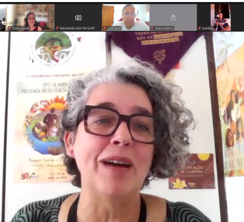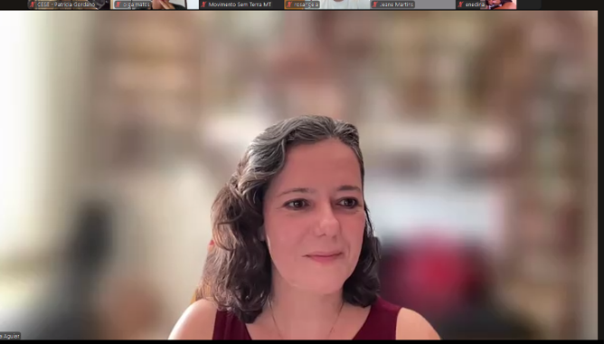 Joice Silva, Educadora popular e dirigente nacional do MST (TO), ao ressaltar a reforma agrária como urgente contra as violações de direitos, ainda lembra da importância do sagrado como caminho na luta pela vida: “Se não fosse a minha fé em tempos difíceis! Para nos proteger e o nosso grito para ecoar para além das violências. Não dá para falar de justiça climática sem falar no quanto isso dói na gente”.