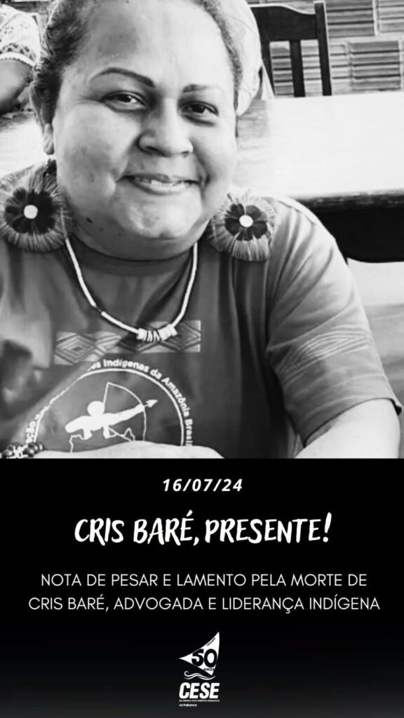 A Coordenadoria Ecumênica de Serviço (CESE) vem, por meio desta nota, demonstrar seu pesar e lamentar a morte de Cristiane Soares Baré. Cris era liderança do Rio Negro (AM), e forte referência no ativismo e direitos dos povos indígenas.