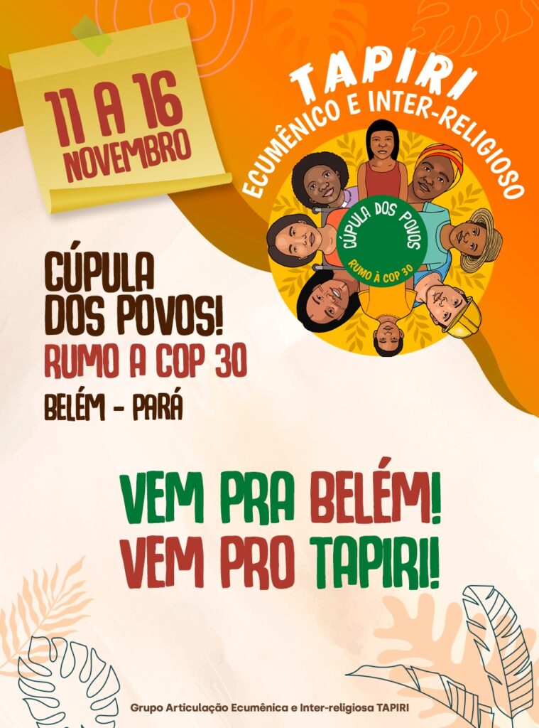De 11 a 16 de novembro de 2025, a cidade de Belém (PA) sediará o Tapiri Ecumênico e Inter-religioso na Cúpula dos povos, um grande encontro que reunirá lideranças de diversas tradições religiosas, povos indígenas, comunidades quilombolas, tradicionais de terreiro, movimentos sociais e juventudes de todo o Brasil e do mundo. O evento, que acontecerá na Catedral Anglicana de Santa Maria (Av. Serzedelo Corrêa, 446 – Nazaré), será um espaço de diálogo, formação de alianças e elaboração de propostas para influenciar as discussões da 30ª Conferência das Nações Unidas sobre Mudanças Climáticas (COP30).